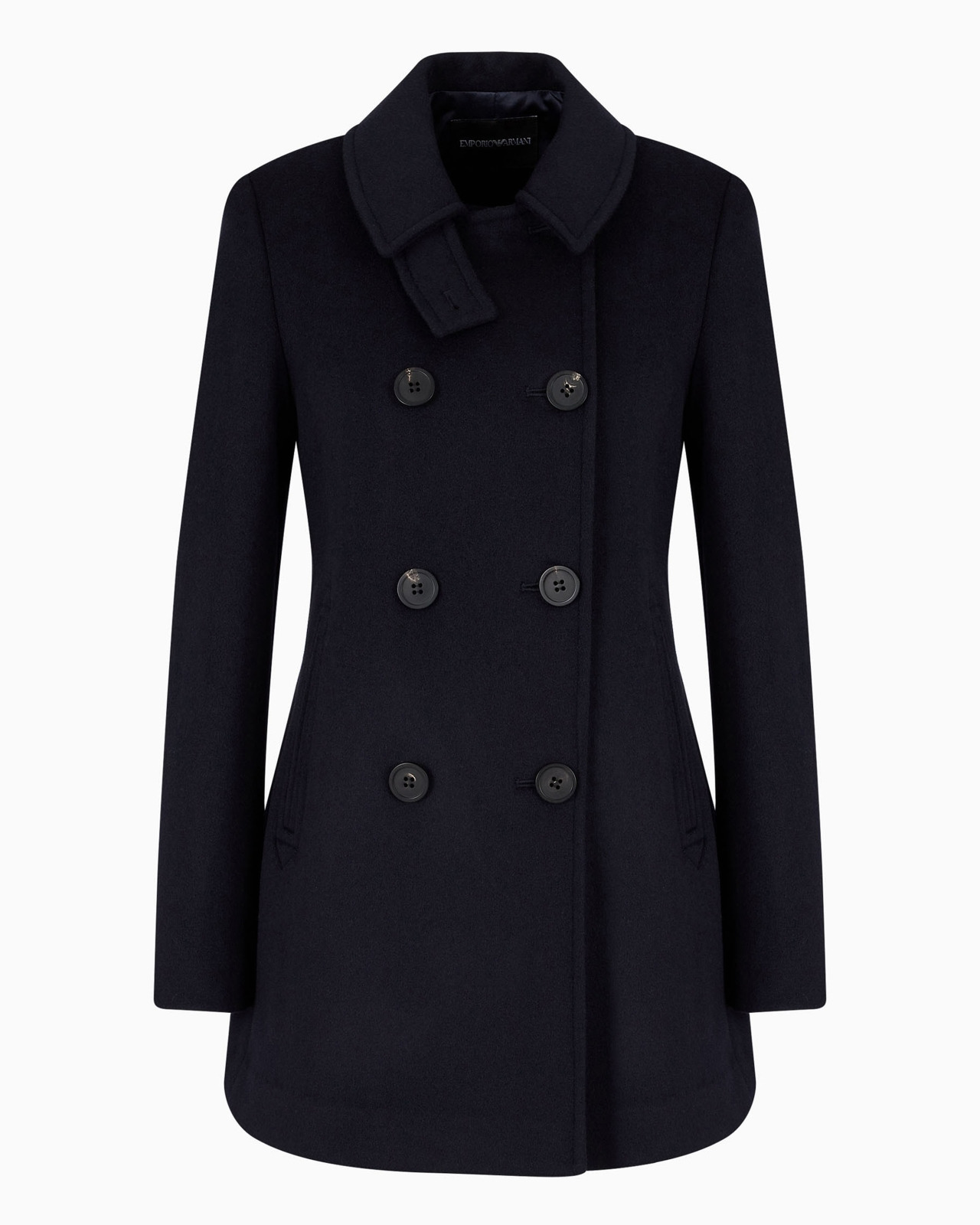 Double-breasted pea coat in Casentino wool with horn-button closure. The back godet pleat creates a natural flare. Versatile, comfortable outerwear, perfect for completing a wide array of outfits with a laid-back chic allure. The piece belongs to the Essentials selection, the Emporio Armani capsule collection that makes a statement of enduring style: both elegant and practical, it works for numerous combinations on a wide array of occasions. The colour palette includes the brand’s characteristic neutral shades, combined with a minimalist design to create a series of key pieces for the female wardrobe. Product Code: 0NB50T2NWEZ10926 Details Composition 90% Wool 10% Cashmere Cloth Classic collar Double-breasted closure Genuine horn buttons Long sleeves Side pockets Godet pleat at back Satin lining Fitting The model is 178 cm tall and is wearing size 40/S (Italian Size)