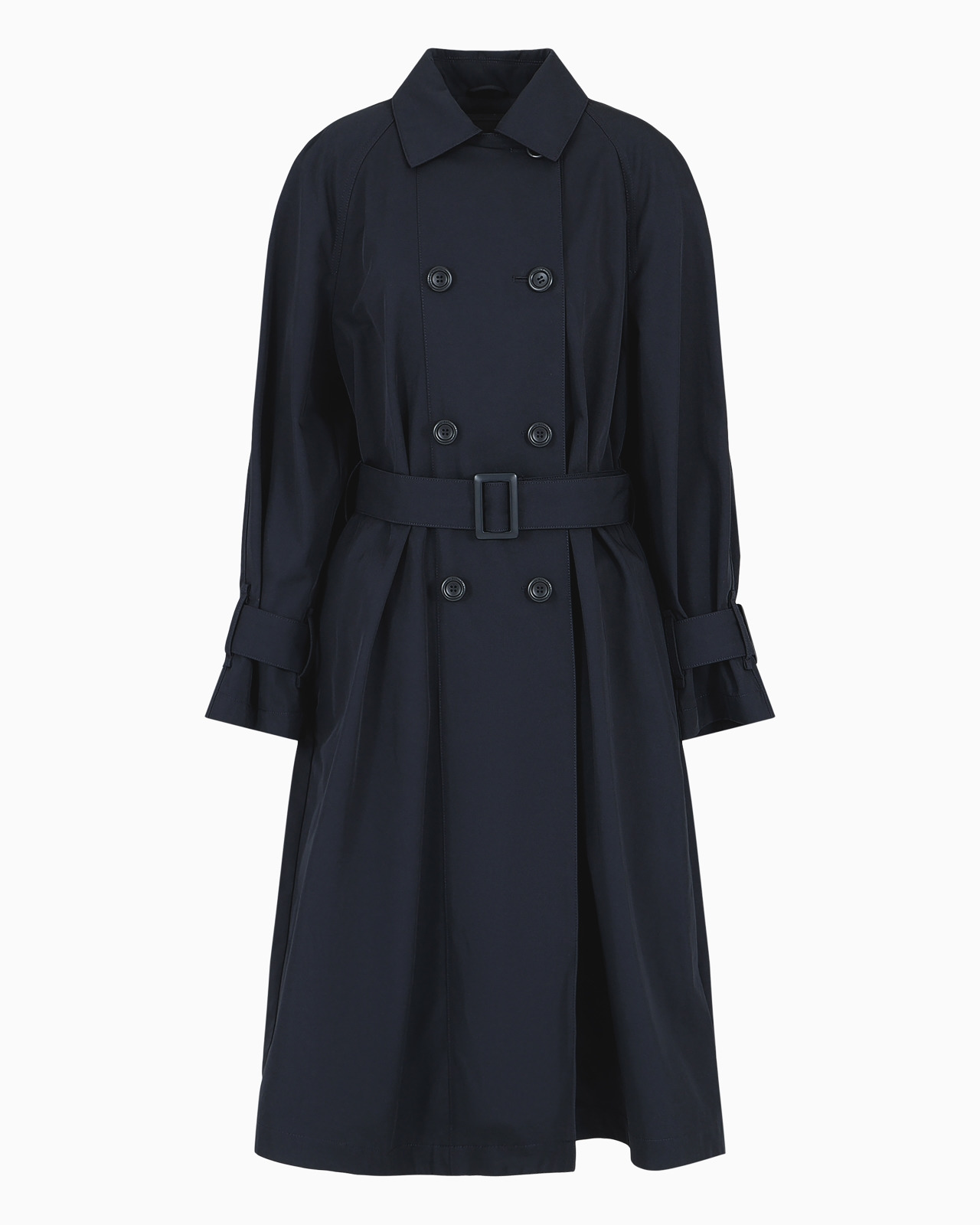 Double-breasted trench coat with belt in water-repellent technical cotton