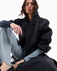 Double-breasted trench coat made from a cotton-blend technical fabric, with a belt and flap at the back. A practical, modern style that is perfect as functional outerwear thanks to its water-repellent, breathable and super-comfortable properties, as affirmed by the patch sewn inside. Product Code: 3D2L632NHYZ10926 Details Composition 57% Polyester 43% Cotton Technical fabric Water-repellent Breathable Ultra comfort Double-breasted Classic collar Matching buttons Long sleeves Strap and buckle cuffs Belt with buckle at the waist Back storm flap Back centre vent Fitting The model is 178 cm tall and is wearing size 40/S (Italian Size)