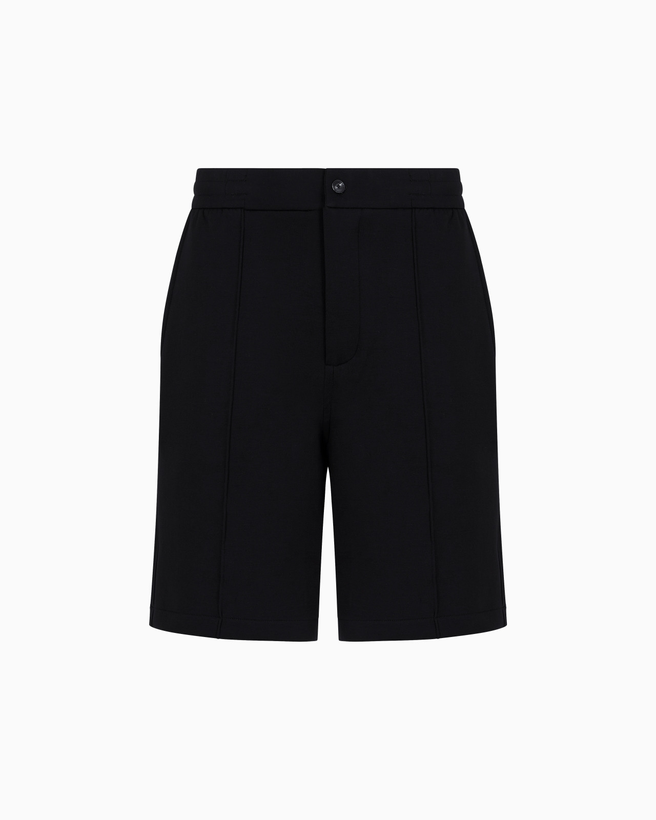 Bermuda shorts with elasticated back waist and central ribs down the legs. The cosy, comfortable texture blends with the casual style creating a versatile, refined piece that satisfies the modern man’s need in the ongoing search for comfort. Product Code: 6D1PK61JHSZ10999 Details Composition 76% Cotton 18% Polyester 6% Elastane Waist with elastic back Zip and button closure Central ribs Side pockets Back welt pockets Fitting The model is 188 cm tall and is wearing size 48/M (Italian Size)