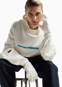 Double-jersey hooded sweatshirt with embossed logo embroidery