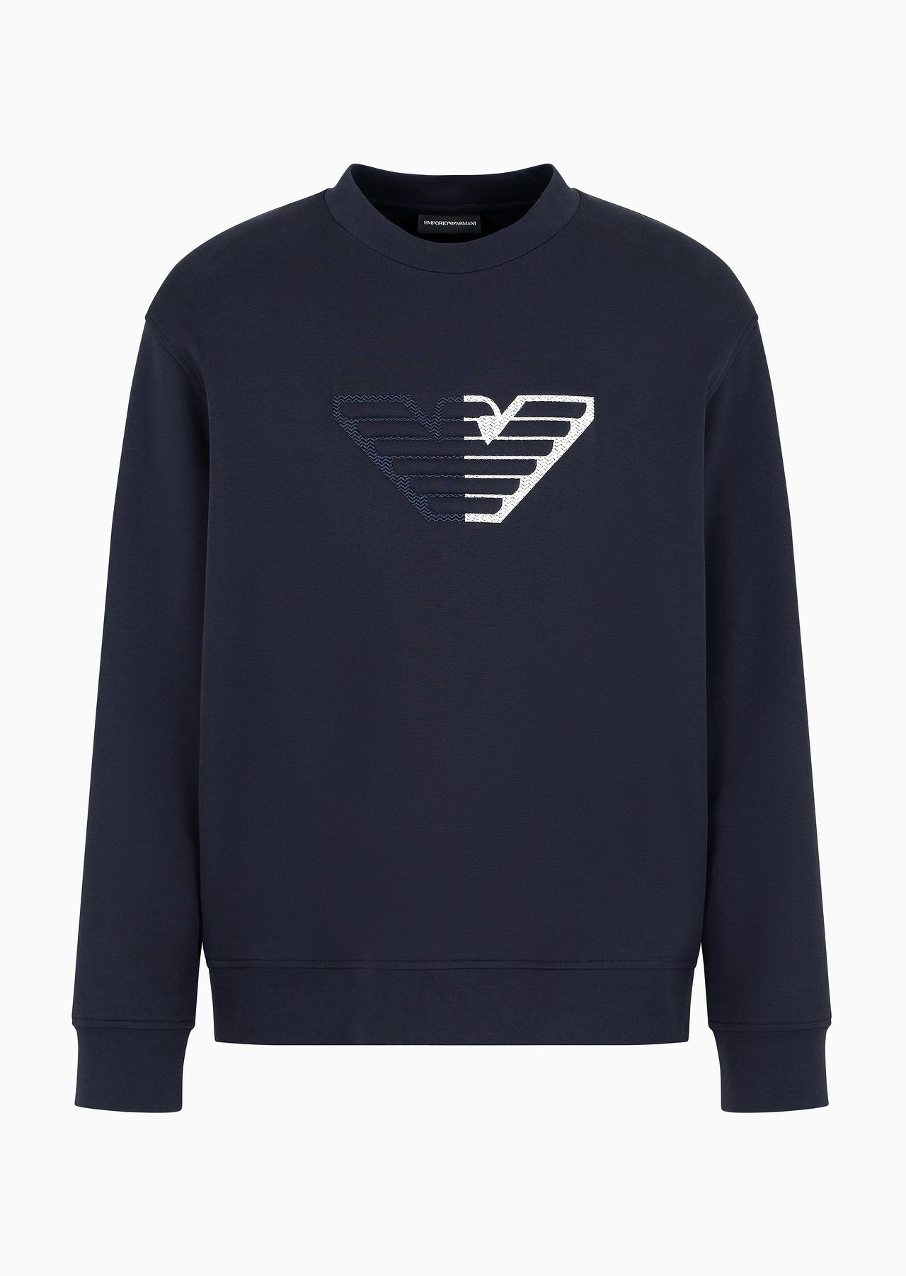 Regular-fit crew-neck sweatshirt in soft cotton-blend double jersey. The two-toned, super-embossed oversized eagle is created on an embroidered base that follows chevron motif to highlight the eagle’s profile. Product Code: 6D1M761JHSZ10920 Details Composition 76% Cotton 18% Polyester 6% Elastane Regular fit Double jersey Crew neck Long sleeves Elasticated trim Oversized, two-tone eagle Fitting Regular fit The model is 188 cm tall and is wearing size 48/M (Italian Size)