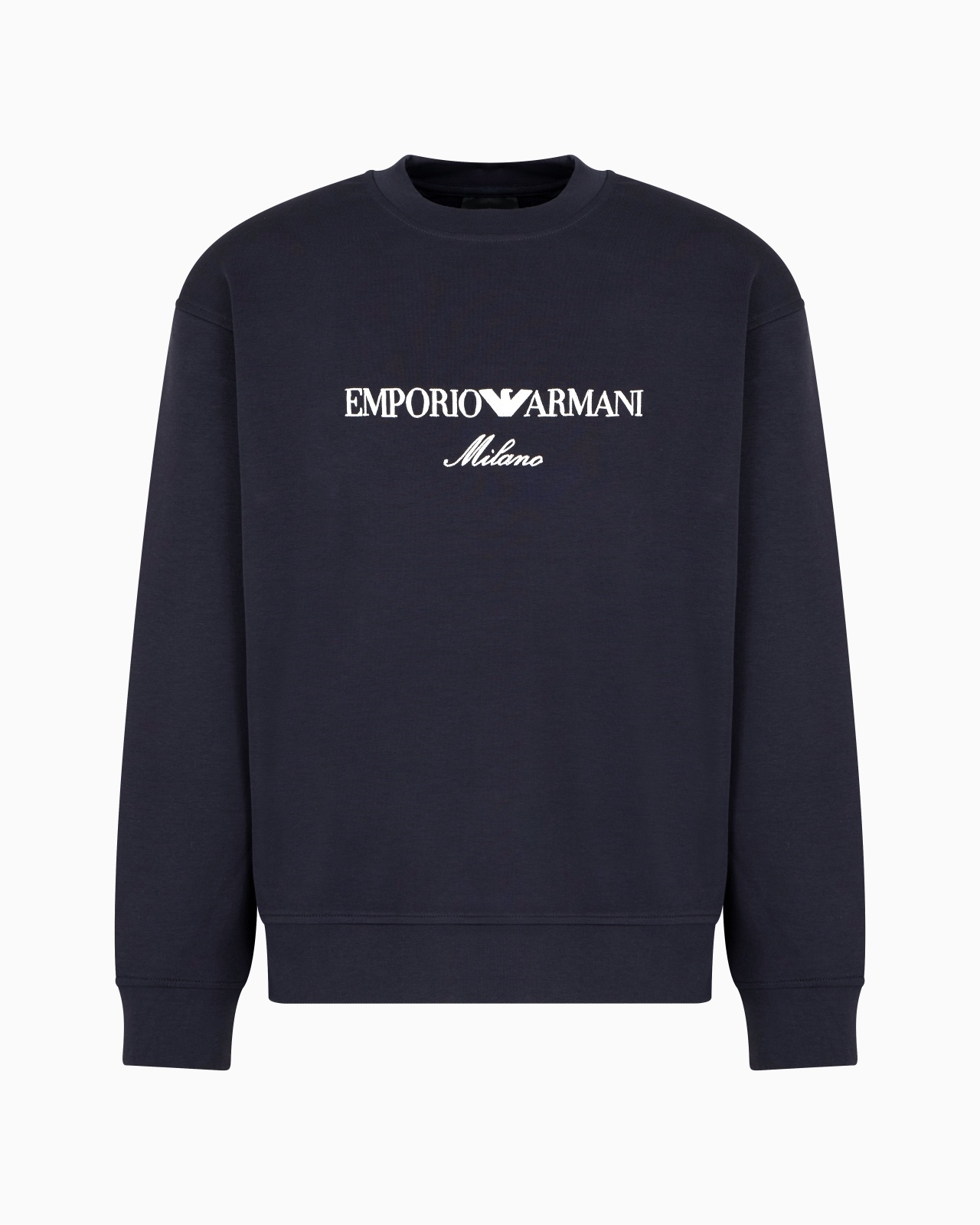 Crew-neck sweatshirt made from soft double jersey and featuring a front logo. The logo embroidered on the front adds distinction to a garment designed to be worn every day by the quintessential Emporio Armani man. Regular fit Double jersey Crew neck Long sleeves Logo embroidery Product Code: EM001052AF10013MB222