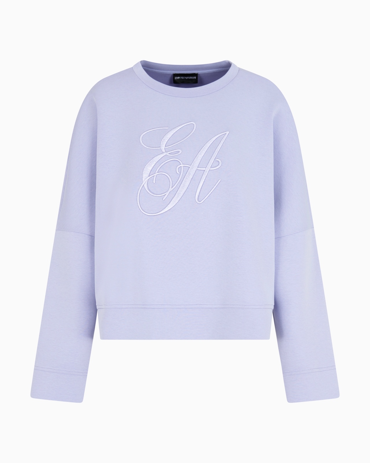Double jersey, crew-neck sweatshirt. The iconic Emporio Armani logo is the star of this piece, enhancing each style in its simplicity. Here we find it in the foreground embroidered in a matching tone. Double jersey Rounded neckline Oversized logo embroidery Long sleeves Printed logo at the back of the neck Product Code: EW000482AF10002UA036