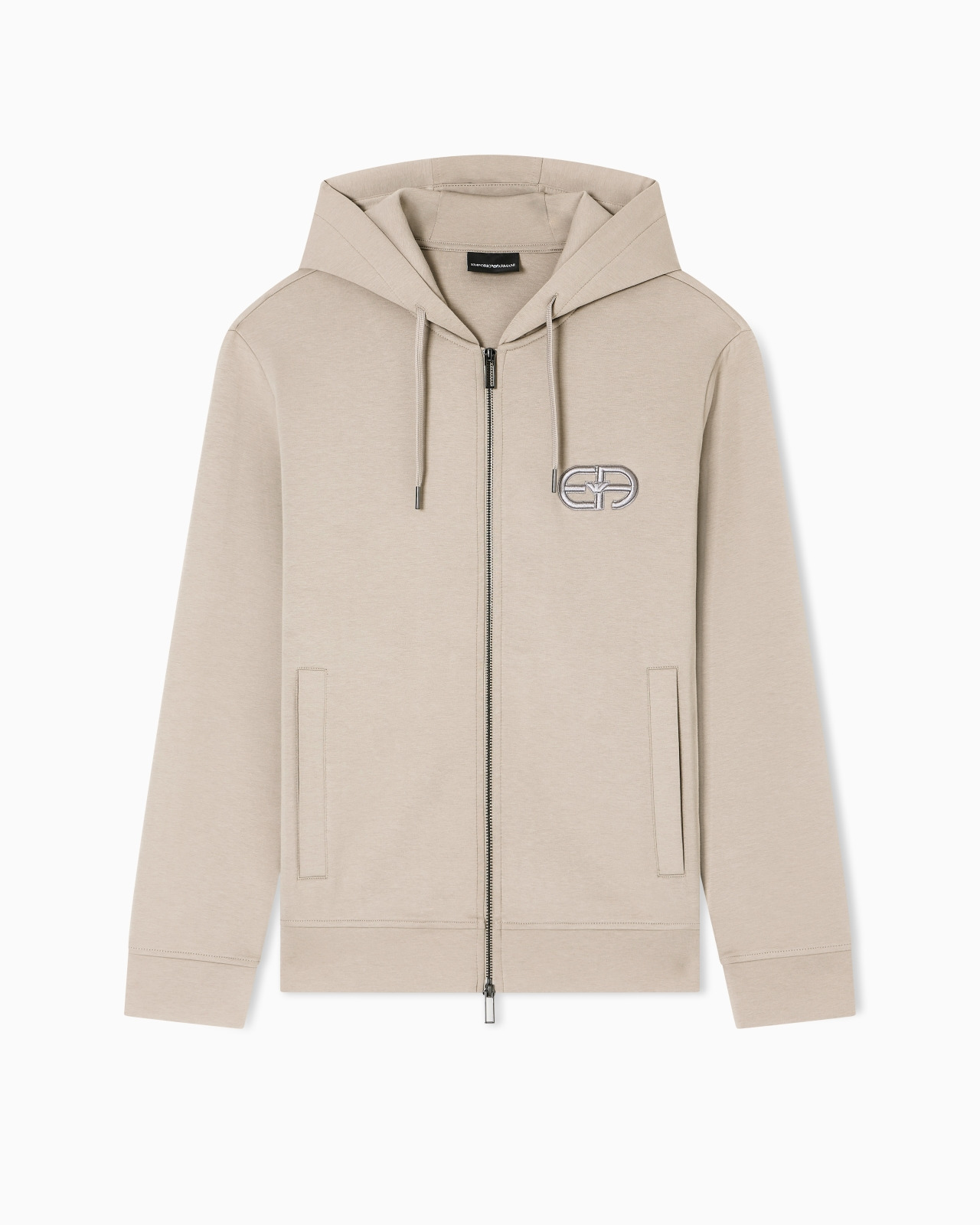 Double-jersey zip-up hooded sweatshirt with embossed, embroidered EA logo