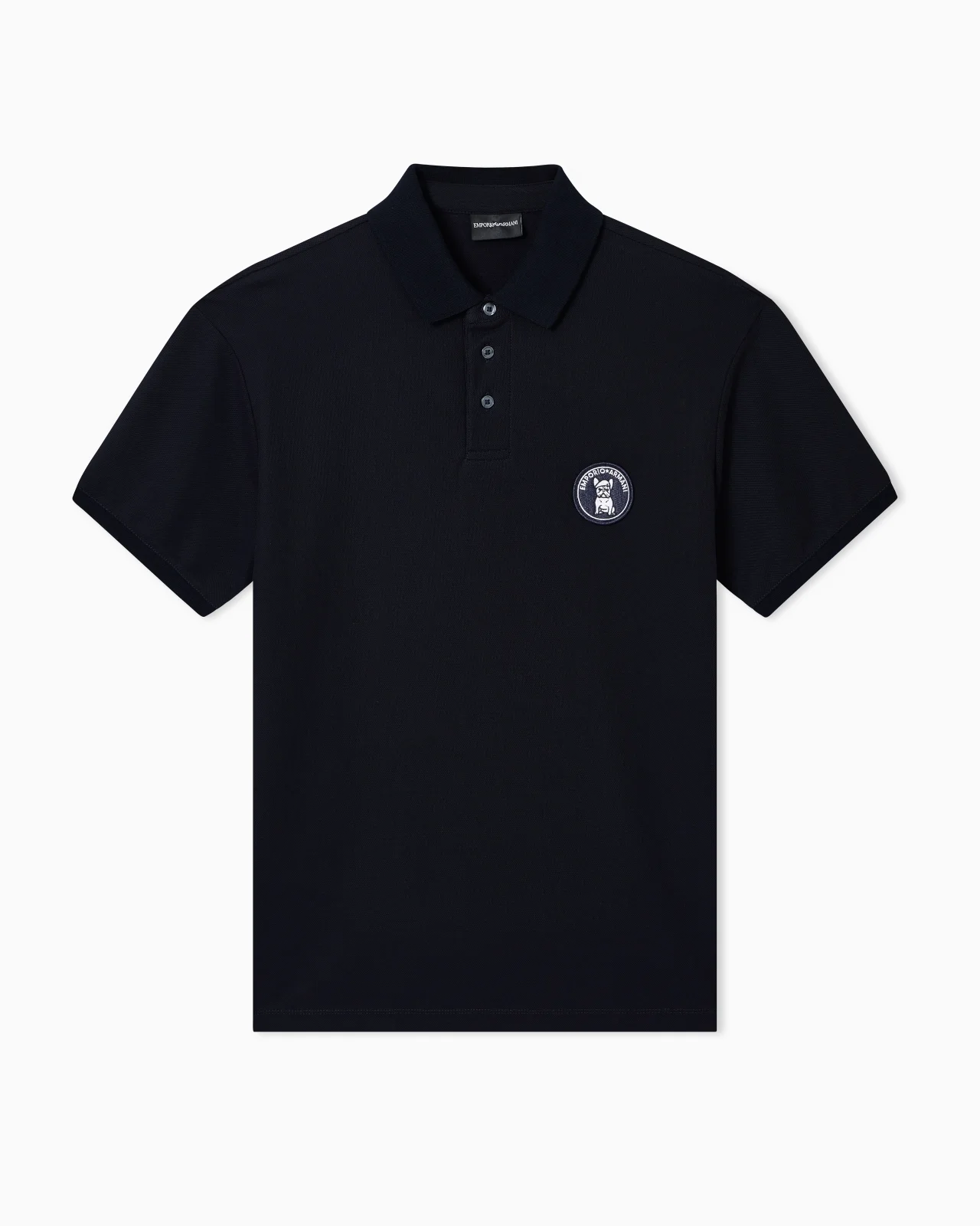 Polo shirt made of stretch pique, a fabric that combines comfort and impeccable fit. The classic polo collar is reinterpreted in a contemporary way, while the eagle embroidered on the chest adds a distinctive touch. Perfect for a casual-chic look. Stretch pique Polo collar Partial button closure Short sleeves Eagle embroidery on the chest Regular fit Product Code: EM005244AF10497UB118