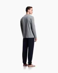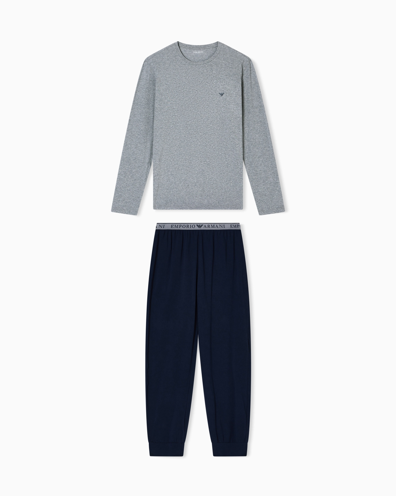 Cotton-jersey pyjamas consisting of a crew-neck top and trousers featuring an elasticated logo waistband. Eagle logo on chest. Stretch jersey 2-piece pyjamas Crew-neck jumper Front micro eagle Trousers with elasticated waist Product Code: EM000610AF10776M8098