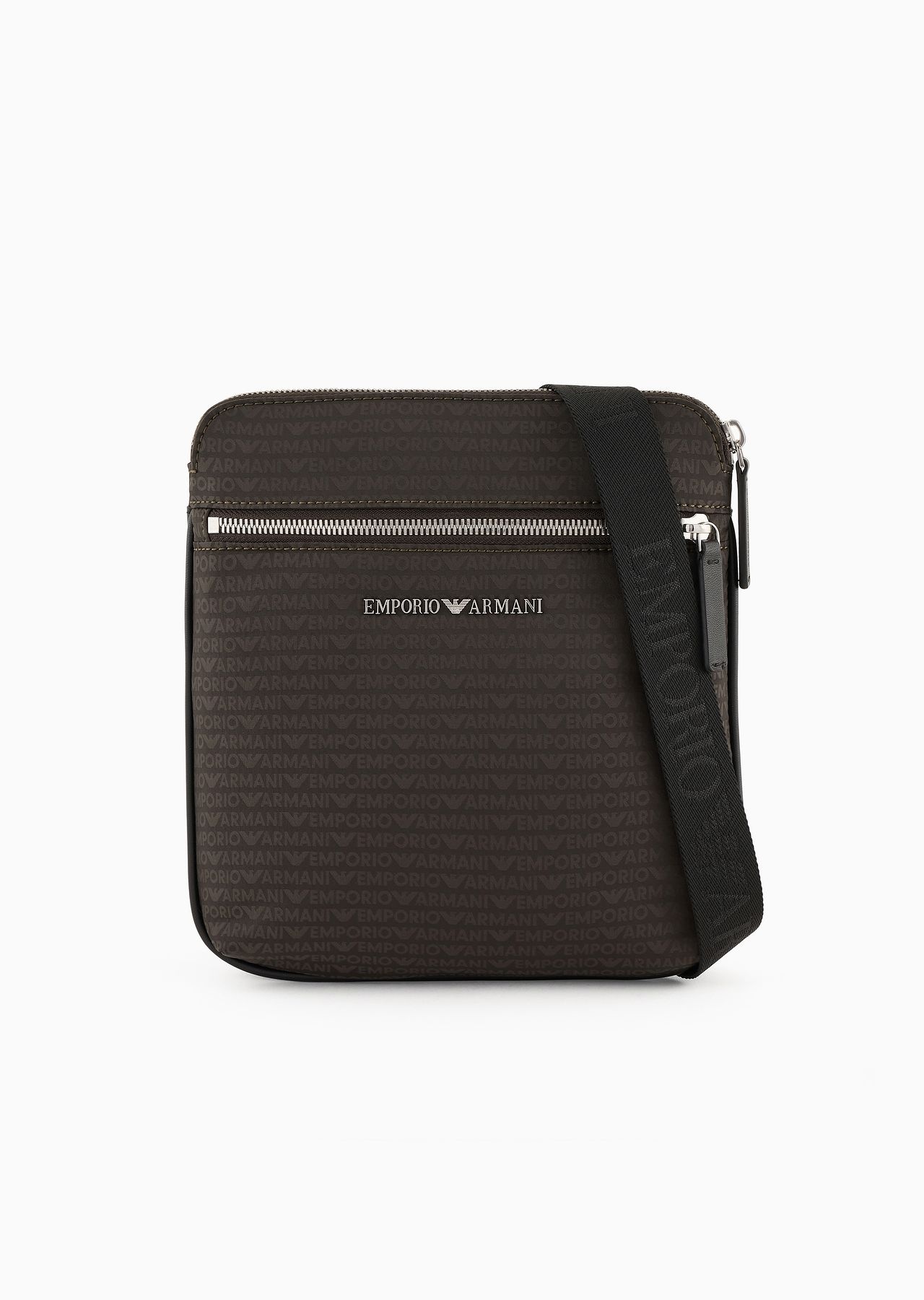 Flat crossbody bag with webbing logo strap. A line of accessories with urban appeal that links perfectly with this season’s ready-to-wear selection: the accessories are made in the same jacquard-woven nylon texture with signature all-over jacquard logo lettering. Product Code: Y4M425YQ76E188294 Details Composition 100% Polyamide Measurements: 23.5 x 23.5 x 4 cm Jacquard nylon All-over logo lettering Zip closure Front zip pocket Metal logo Adjustable logo shoulder strap This bag is suitable for carrying: phone, wallet, keys