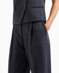Menswear-inspired trousers with darts and a narrow waistband. Made of pure virgin-wool grisaille, a brushed weave formed of different-coloured threads that merge to form a compact, durable texture in a single shade. The resulting fabric is characterised by a micro-textured weave that gives the entire garment a salt-and-pepper effect. Product Code: EW001097TE112221OB003 Details Composition 100% Virgin Wool Grisaille weave Narrow waistband with belt loop Zip and hook closure Front pleats Side pockets