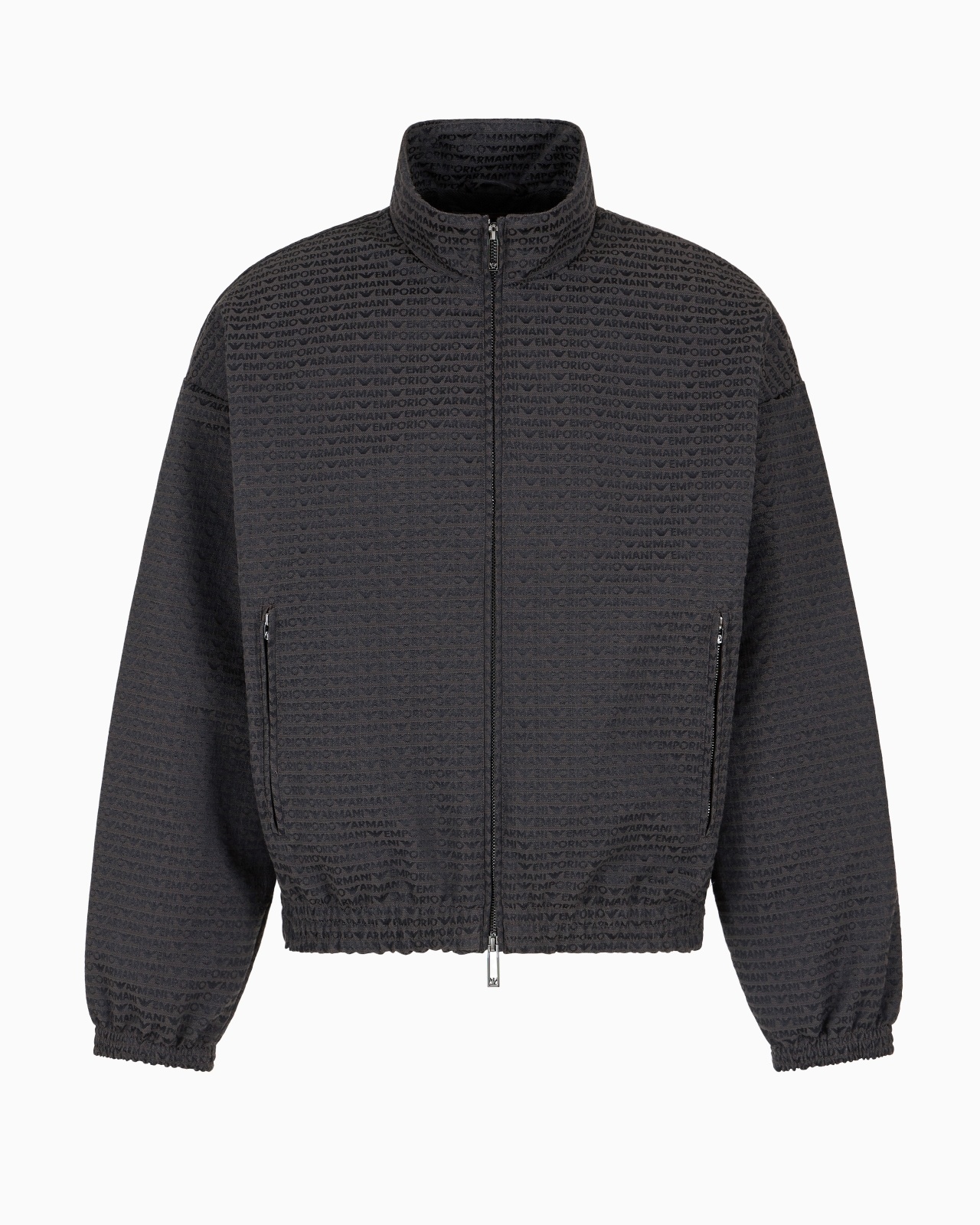 FULL ZIP BLOUSON IN ALL-OVER JACQUARD LETTERING FABRIC