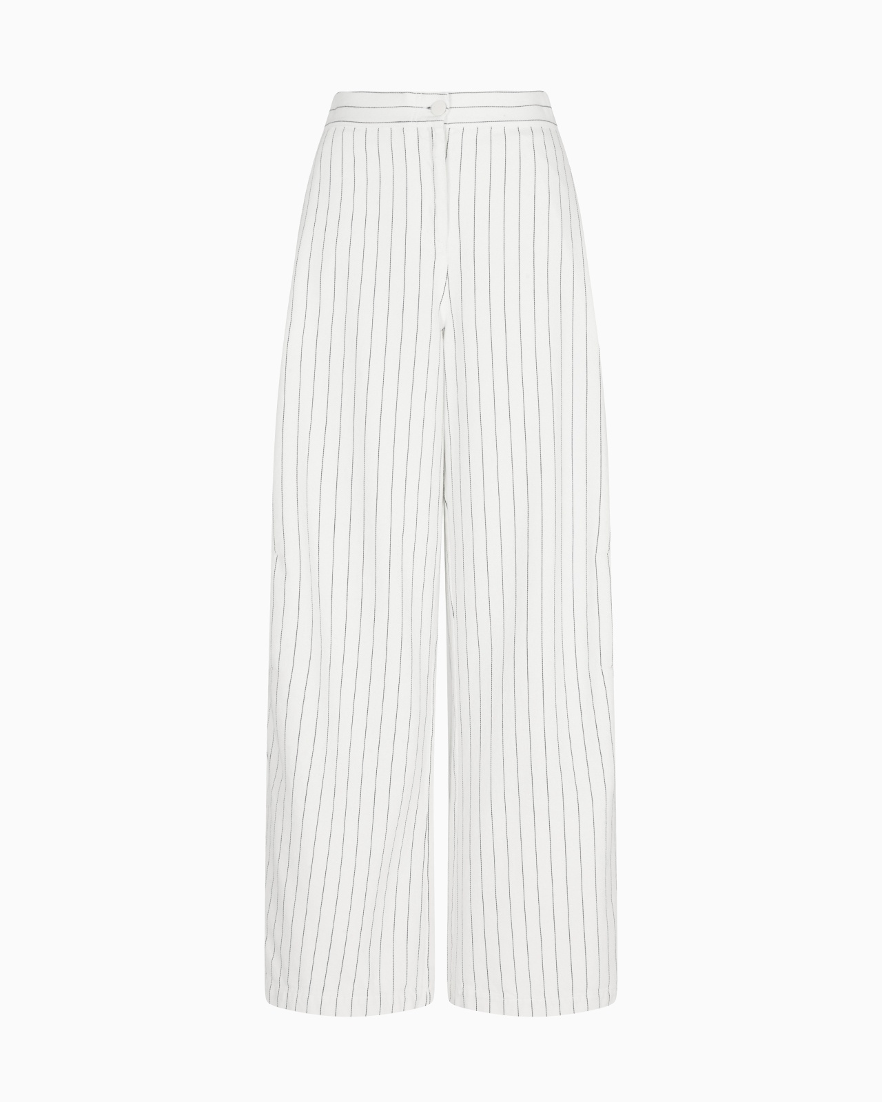 Modern style trousers made from cotton bull, featuring a garment-dyed wash that gives the piece a fresh, exclusive look. The all-over vertical striped motif completes the piece with distinction. Cotton bull Garment dyed Zip and button closure Side pockets Elasticated waist at the back Back patch pockets Product Code: EW000744AF12442F0010
