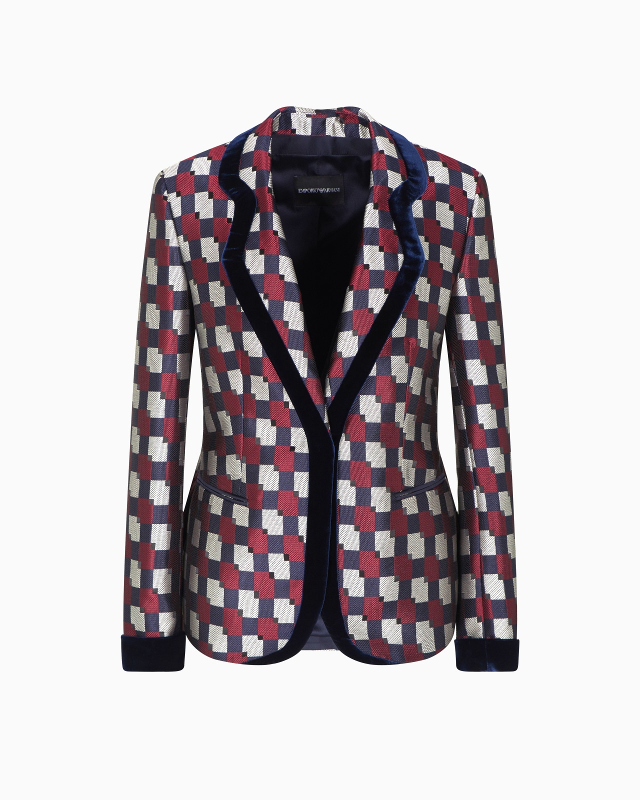 GEOMETRIC JACQUARD BLAZER WITH VELVET DETAILS