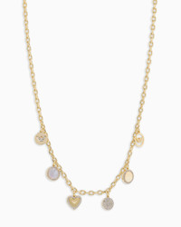 This station necklace features gold-tone brass, white mother of pearl, white cz and a lobster clasp closure. Necklace Station Brass Gold Length: 400mm + 50mm, Width: 10mm, Height: 10mm Product Code: EGS3103710NLPNLC