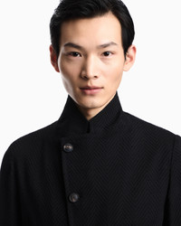 GURU COLLAR JACKET WITH OFF-CENTRE FASTENING IN 3D CHEVRON VIRGIN WOOL
