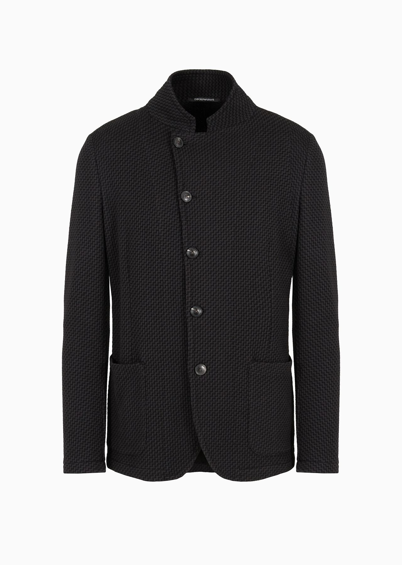 Guru-collar jacket with off-centre fastening in 3D-effect knit jersey