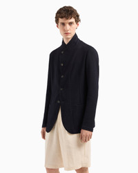 Jacket with a hallmark guru collar, off-centre button fastening and slim lapels at the neckline when not fully closed. Made of virgin wool, its unique armure weave creates a refined, all-over embossed motif. Armure weave Embossed motif Buttoned fastening Long sleeves Side patch pockets Unlined garment Product Code: EM000144TE12889UB081