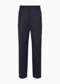 Trousers made from a virgin wool blend featuring a mouline weave that highlights an all-over dense chevron motif. Tobacco-coloured stitching completes the piece. Product Code: EM000277TE112381UB109 Details Composition 55% Polyester 45% Virgin Wool Mouline weave Chevron motif Zip, hook and button closure Waist with belt loops Side pockets Back patch pockets Tobacco-coloured stitching Fitting The model is 188 cm tall and is wearing size 48/M (Italian Size)