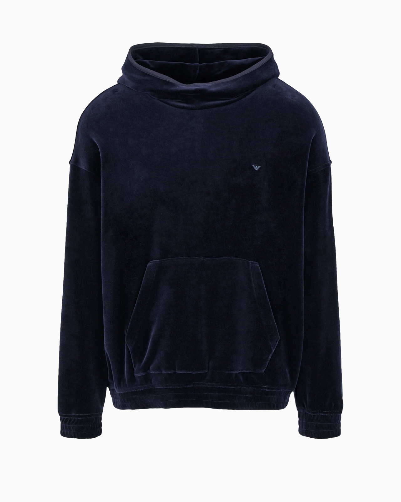 Hooded sweatshirt in chenille with Emporio Armani embroidery