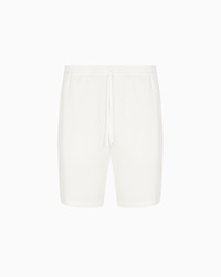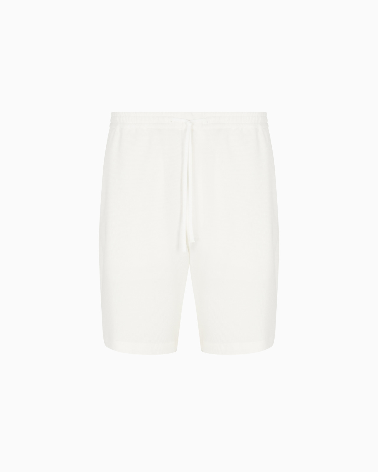 Drawstring Bermuda shorts made from micro-textured crepe jersey with a unique three-dimensional pique effect and an especially fluid and lightweight look. The Icon capsule collection is dedicated to the Emporio Armani man and celebrates, season after season, the versatility and timeless elegance of the brand, reworking iconic clothing with a modern twist, in a perfect harmony of tradition and innovation. The FW25 selection is initially defined by fluid and airy silhouettes that play on blue and camel tones, then continues with a focus on exclusive knitwear distinguished by graphic designs and patterns with a strong visual impact. Crepe jersey Micro-textured weave Elasticated drawstring waist Side pockets Back welt pockets Product Code: EM003655TE14101U0005