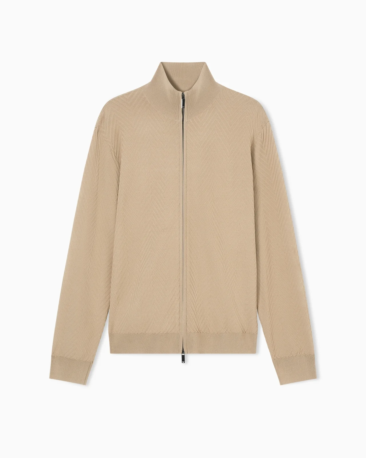 ICON ASV VISCOSE BLEND CHEVRON FULL-ZIP CARDIGAN