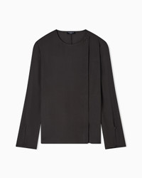 Blouse with a wrap closure and concealed off-centre buttoning made of pure silk double georgette. The garment is part of the Icon capsule collection. Silk georgette Crew neck Wrap closure Concealed buttoning Long sleeves Buttons covered in the same fabric as the cuffs Unlined garment Product Code: EW003732TE10518U8119