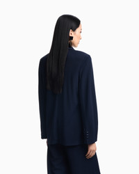 Double-breasted blazer with shawl lapels, made of a compact pique in a stretch viscose blend. Fresh, draped pique fabric brings understated elegance to everyday clothing. This style is part of the Icon capsule collection: the essence of Emporio Armani, providing a modern interpretation of the brand’s DNA by updating the iconic shapes and volumes of its past, aimed at affirming a classic, evergreen allure. Pique Double-breasted Neckline with shawl collar Long sleeves Button cuffs Double-welt side pockets Unlined garment Product Code: EW001122AF13314UB139