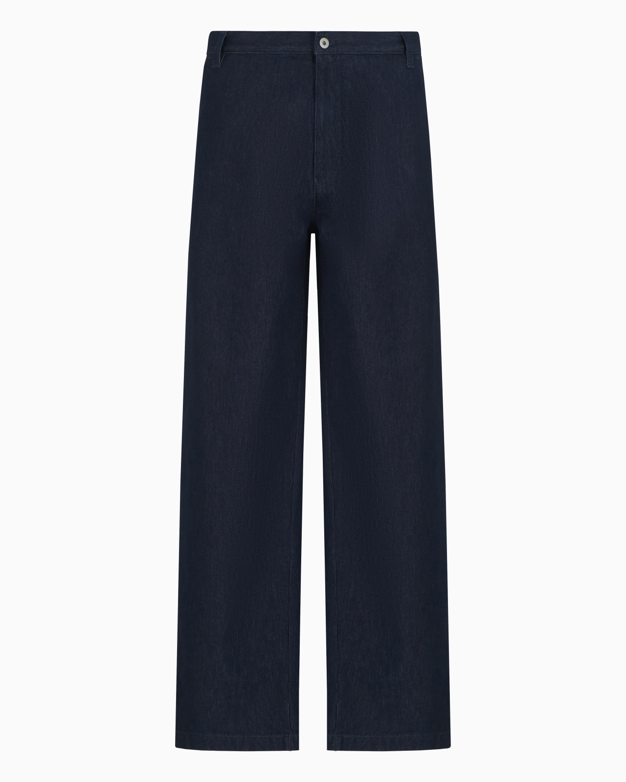 Cotton-denim wide-leg jeans. The Icon capsule collection dedicated to the Emporio Armani man is revived for the SS25 season: the result is a selection of the most iconic pieces in the collection that affirm the Emporio Armani heritage. The colour palette is typically Armani, with essential navy blue paired with white and a series of natural shades ranging from greige to nut-brown. Emporio Armani’s DNA achieves its finest expression in sophisticated and comfortable total looks, thanks to soft textures, tactile patterns and fluid silhouettes. Denim Waist with belt loops Button-and-zip closure Side pockets Back patch pockets Eagle plate Product Code: EM001673AF15210MB001