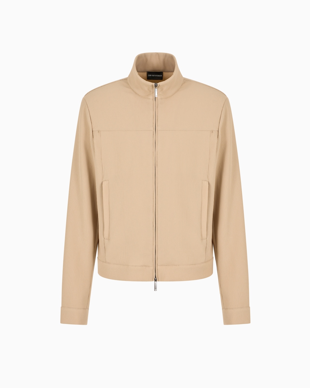 Full-zip blouson made from micro-textured crepe jersey with a unique embossed pique effect and an especially fluid and lightweight look. A garment dedicated to the modern man who appreciates the value of classic details. The Icon capsule collection dedicated to the Emporio Armani man makes a statement for the SS25 season with a selection that remains modern and up-to-date by reworking the brand’s iconic styles. Its exclusive 3D weave textures and typically Armani palette that ranges from cream, greige and hazelnut to the ubiquitous navy blue make the wardrobe instantly recognisable. Crepe jersey Micro-textured weave Full zip Side pockets with zip Long sleeves Product Code: EM001952TE14101U1159