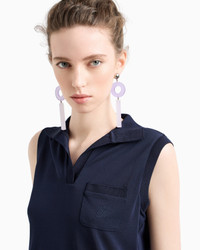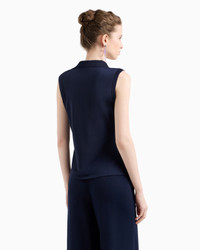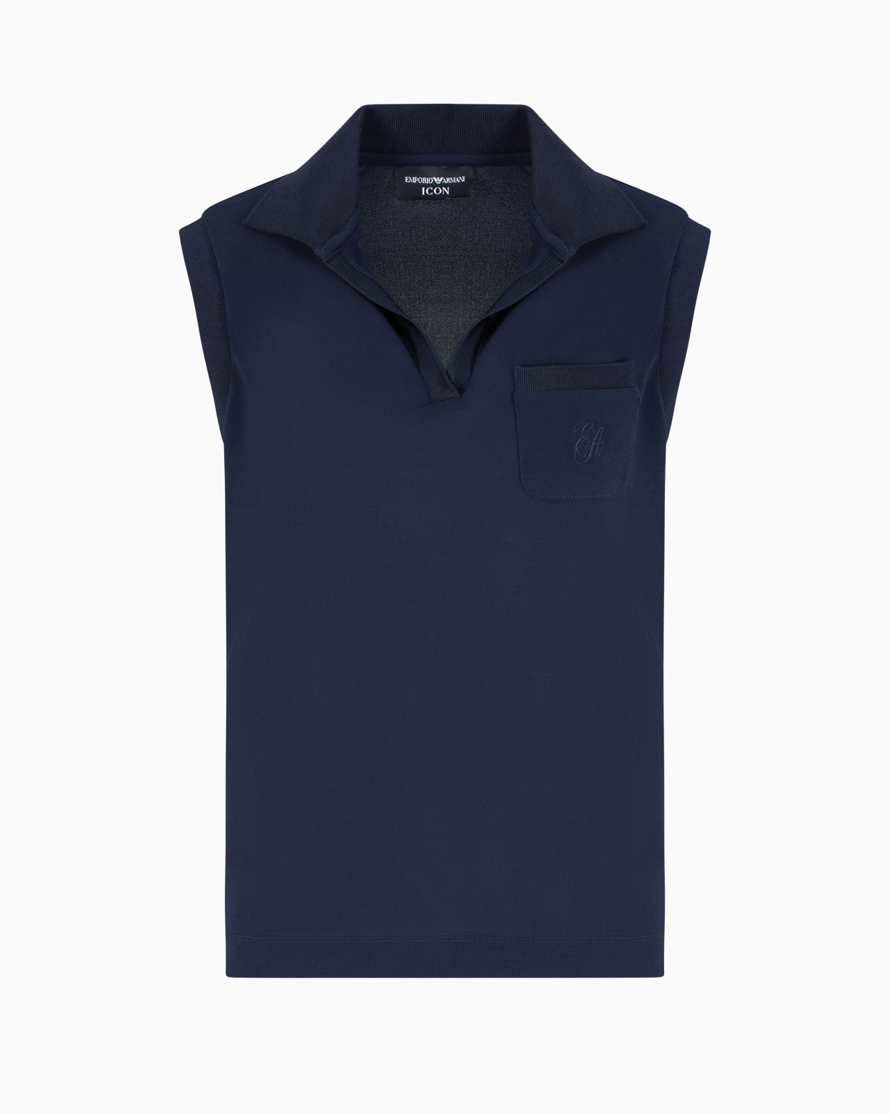 Sleeveless polo-collar top, made of viscose crepe jersey with a micro-pique construction that is cosy and fresh and adds understated elegance to everyday clothing. Embroidered logo on the front patch pocket. This style is part of the Icon capsule collection: the essence of Emporio Armani, providing a modern interpretation of the brand’s DNA by updating the iconic shapes and volumes of its past, aimed at affirming a classic, evergreen allure. Crepe jersey Micro pique Open polo-shirt collar Sleeveless Patch pocket Logo embroidery Finished edges Product Code: EW000669AF12367UB115