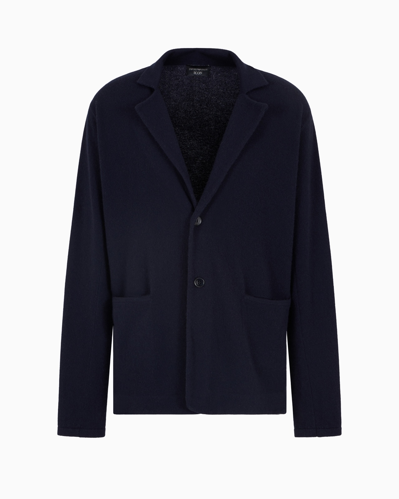 Jacket with front lapels, made of a pure cashmere knit with a felted feel. The Icon capsule collection dedicated to the Emporio Armani man is revived for the SS25 season: the result is a selection of the most iconic pieces in the collection that affirm the Emporio Armani heritage. The colour palette is typically Armani, with essential navy blue paired with white and a series of natural shades ranging from greige to nut-brown. Emporio Armani’s DNA achieves its finest expression in sophisticated and comfortable total looks, thanks to soft textures, tactile patterns and fluid silhouettes. Fineness: 12 Cashmere Plain knit on the outside Lapel collar Button closure Side welt pockets Long sleeves Product Code: EM001448AF10402UB109