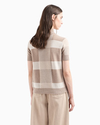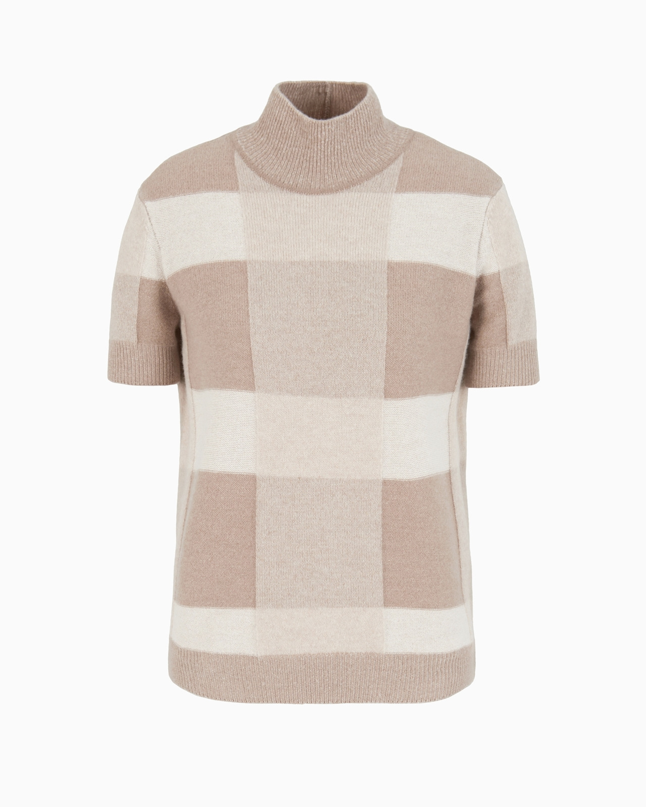 Icon short-sleeved virgin wool mock-neck jumper with a plated check motif