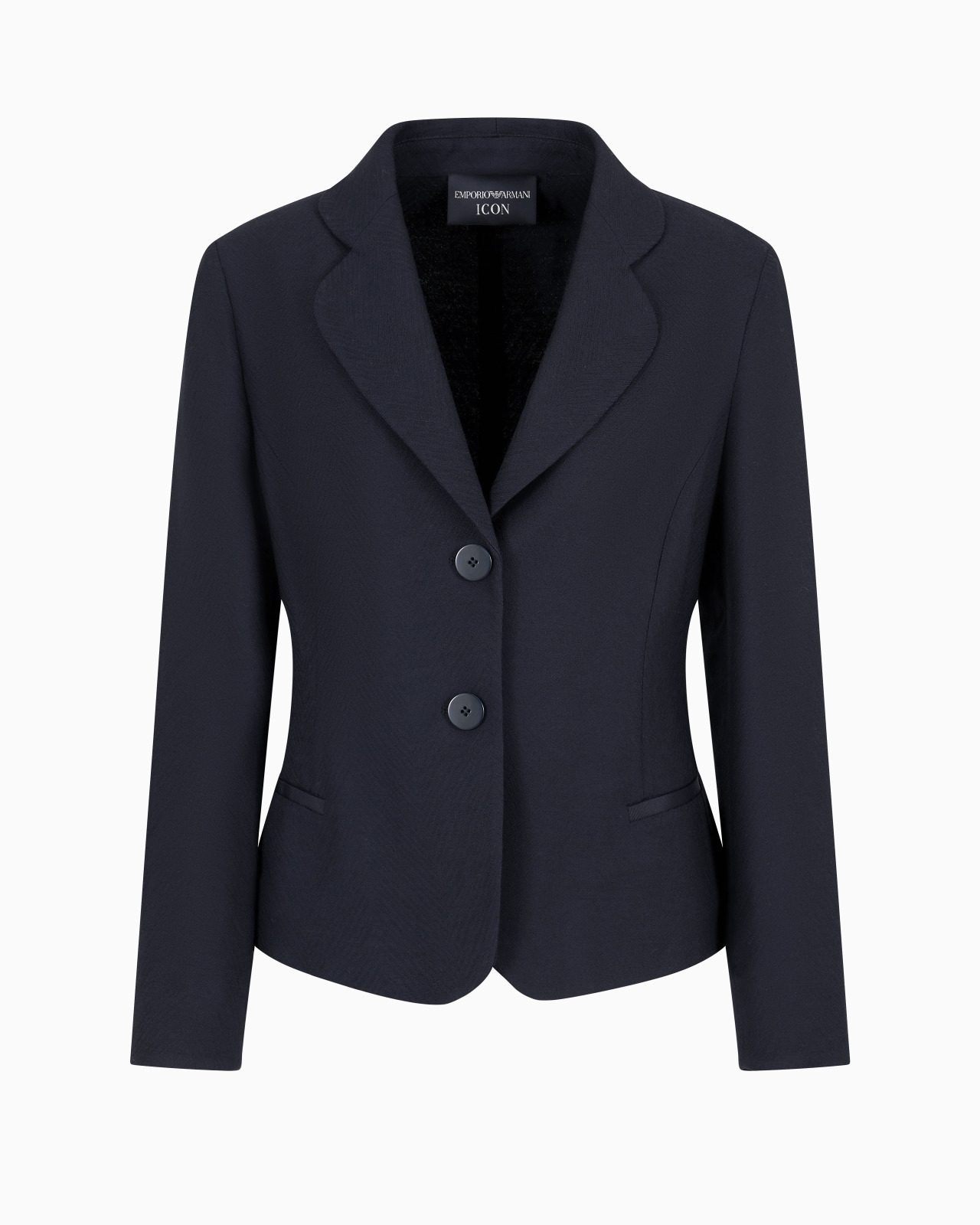 Single-breasted jacket with rounded lapels, made of a virgin wool and viscose blend featuring an iconic chevron pattern. This piece is part of the Icon capsule collection: the essence of Emporio Armani, providing a modern interpretation of the brand’s DNA by updating the iconic shapes and volumes of its past, aimed at affirming a classic, evergreen allure. Product Code: EW000154TE105101OB003 Details Composition 61% Viscose 39% Virgin Wool Chevron motif Collar with rounded lapels Front buttoning Long sleeves Side welt pockets Fitting The model is 178 cm tall and is wearing size 40/S (Italian Size)