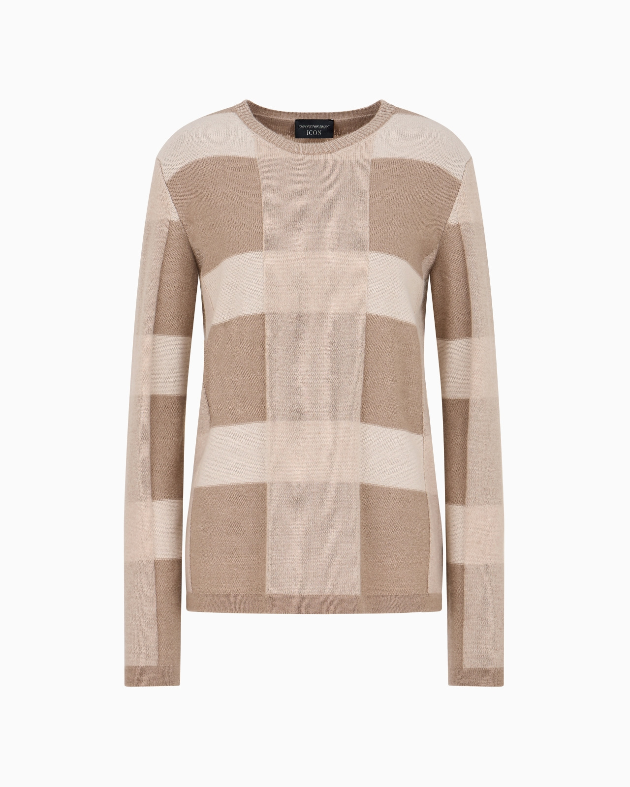 Crew-neck jumper in a virgin-wool and cashmere blend. The plated-effect check pattern adds a distinctive touch. This piece is part of the Icon capsule collection: the essence of Emporio Armani, providing a modern interpretation of the brand’s DNA by updating the iconic shapes and volumes of its past, aimed at affirming a classic, evergreen allure. Product Code: EW000388AF107481F1015 Details Composition 90% Virgin Wool 10% Cashmere Knit Check motif Crew neck Long sleeves Ribbed trim Fitting The model is 178 cm tall and is wearing size 40/S (Italian Size)