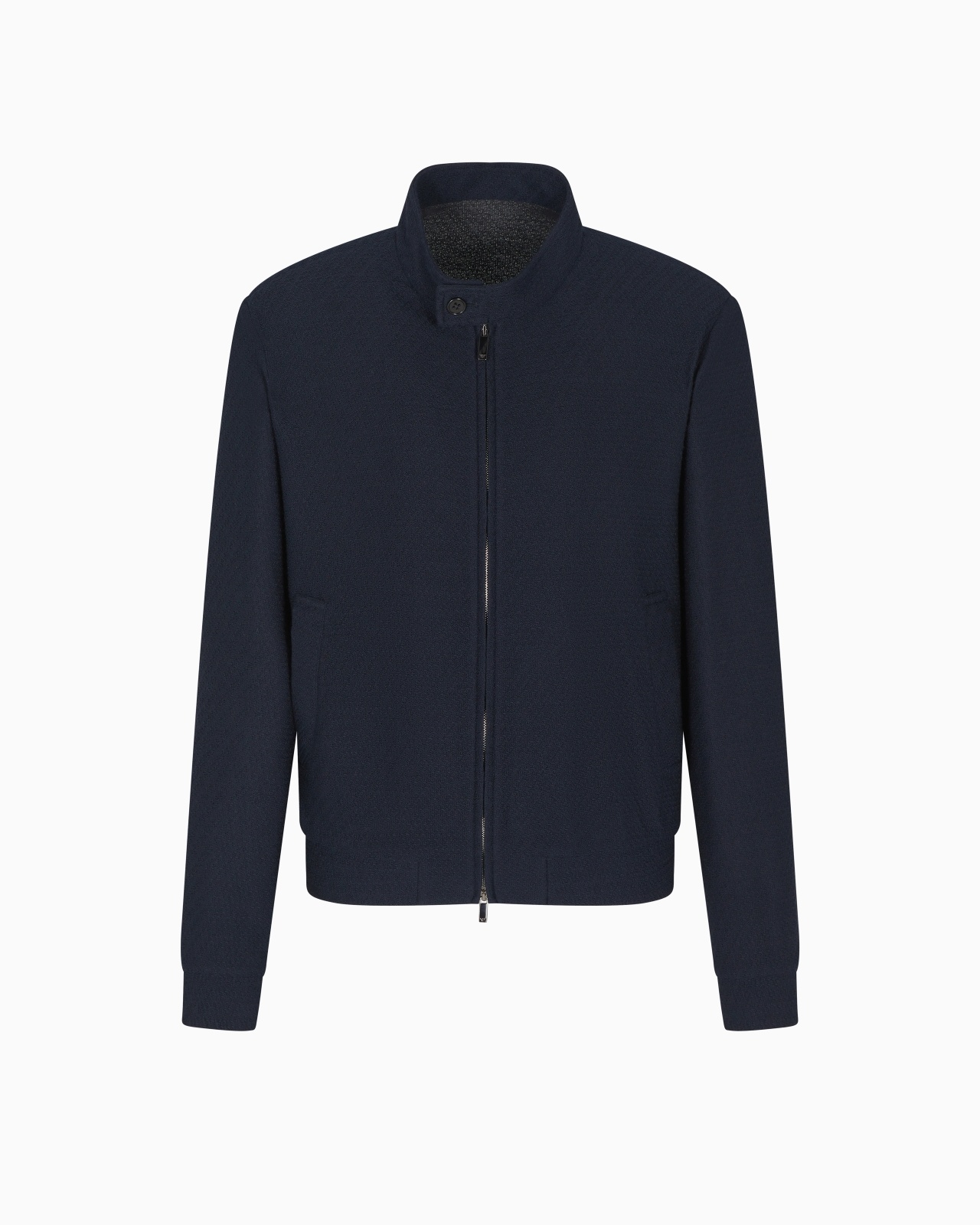 Blouson with zip, in boucle jersey made from a wool and cotton blend with a textured knitwear look. The Icon capsule collection is dedicated to the Emporio Armani man and celebrates, season after season, the versatility and timeless elegance of the brand, reworking iconic clothing with a modern twist, in a perfect harmony of tradition and innovation. The FW25 selection is initially defined by fluid and airy silhouettes that play on blue and camel tones, then continues with a focus on exclusive knitwear distinguished by graphic designs and patterns with a strong visual impact. Boucle jersey Collar with off-centre button Zip closure Open side pockets Unlined garment Product Code: EM000185TE17019UB109