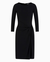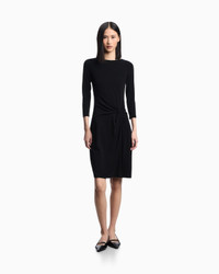 Dress with a round neckline, embellished by a cross-over effect knot on the left side that accentuates the waist, wrapping around the silhouette. Item made of interlock jersey, a fabric with a fine, dense and very compact structure that makes it particularly warm, stretchy and durable. Length: 97 cm Interlock jersey Rounded neckline Long sleeves Knot on the left side Back zip closure Unlined garment Product Code: EW001632AF14054UC001