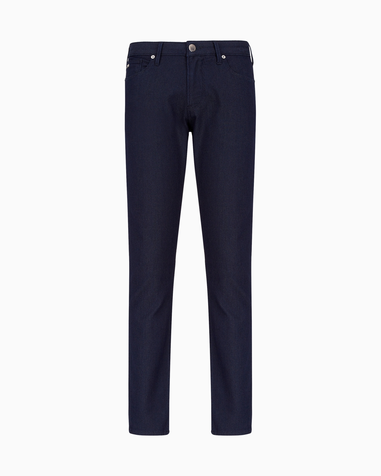 Trousers made from a cotton blend, featuring a micro-armure polka-dot texture. An item that combines the formal practicality of five-pocket trousers with the casual style of jeans. Armure fabric elevates a piece that completes even the most modern outfits. This item belongs to the Essentials clothing selection, the Emporio Armani capsule collection that is an evergreen statement of style: an ongoing collection with clean, well-designed shapes for a wardrobe that meets the demands of any season. These “essential”, versatile pieces are a must-have for the male wardrobe. Product Code: 8N1J061N2NZ10958 Details Composition 56% Cotton 44% Polyester Slim fit Polka-dot armure fabric Five-pocket style Low-rise waist with loops Zip and button closure Coin pocket with logo plate Logo label Eagle logo plate Fitting The model is 188 cm tall and is wearing size 32