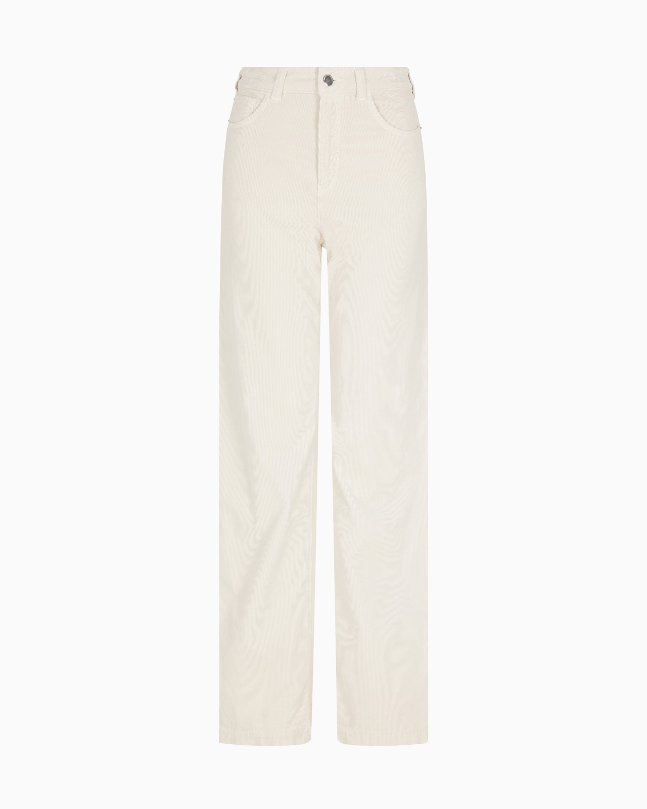Garment-dyed corduroy five-pocket trousers. This style features a typical palazzo design, with a wide leg and high waist. The matching leather logo tag completes the style with distinction. Regular fit. Regular fit Garment-dyed corduroy Five-pocket style High waist with belt loops Wide palazzo leg Zip and button closure Leather logo tag Eagle plate Product Code: EW000749AF17028U1144