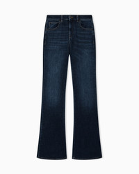 Cotton denim jeans with a mid/high-rise, flared leg and flared hem. The fabric’s worn treatment elevates the garment with a modern touch, while the metallic logo on the back pocket completes the style with distinction. A garment that is both seductive and new in spirit. Slim fit. Length: 115 cm Ankle cuffs: 29 cm Slim fit Denim 10 oz Mid-high rise waist with belt loops Five pockets Flared leg Zip and button closure Leather logo tag Eagle plate on the back pocket Product Code: EW000963AF22224MB002