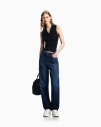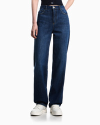 Mid/high-rise jeans with a straight leg, made from pure cotton denim. Made distinctive by a leather jacron with a gold logo. Regular fit. Regular fit Denim Medium-high waist Belt loops at the waist Five pockets Straight cut Leather logo tag Metal eagle plate at the back Product Code: EW000736AF12676MB001