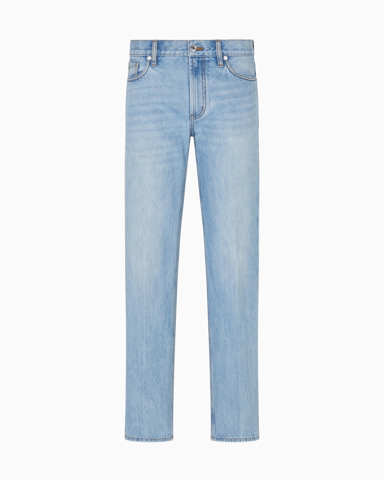 Five-pocket jeans featuring a regular waist, straight leg, comfortable rise and zip closure. The particularly rigid weave is treated with an enzyme stone wash that creates a distinctive worn look on the canvas, with characteristic refined front ribs. Straight fit Five-pocket style Regular waist with loops Zip closure Coin pocket with logo plate Leather logo tag Eagle logo plate Product Code: EM000763AF17805MB003