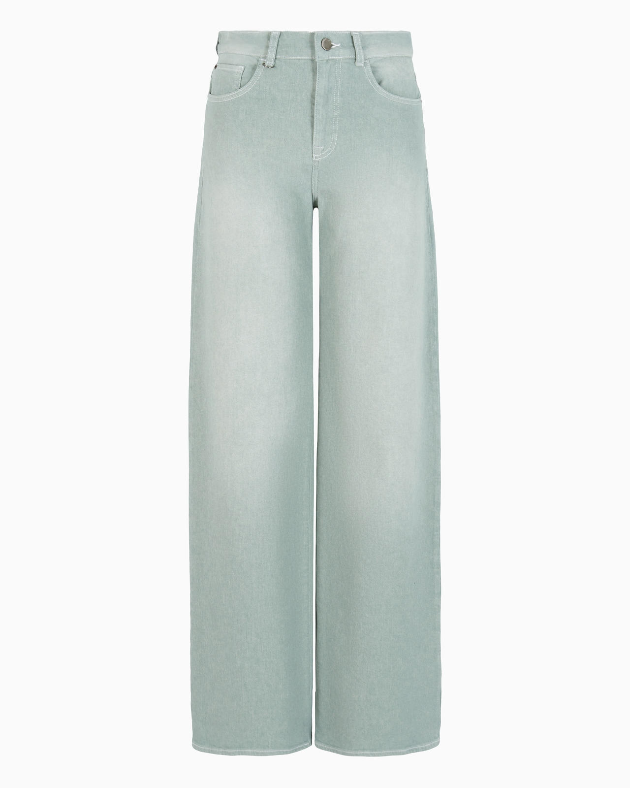 Five-pocket mid-rise jeans with a particularly wide straight leg. The cotton drill canvas used is extremely fresh and lightweight and has a slight gradient effect from the piece-dyed treatment. Product Code: 6D2J7E2N9ZZ10579 Details Composition 98% Cotton 2% Elastane Regular fit Mid-rise waist with belt loops Zip and button closure Five pockets Straight cut Matching leather tag Metallic eagle plate Fitting Regular fit The model is 178 cm tall and is wearing size 27