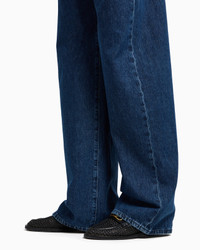 These jeans are defined by a modern style and casual, comfortable structure, enhanced by a medium waist and wide-leg cut. Relaxed fit. The piece features the application of all-over matching rhinestones that elevate and embellish a style designed to be worn day&night. Relaxed fit 14 oz denim Mid-rise waist with belt loops Five pockets Zip and button closure Leather logo tag Eagle logo on the back pocket Matching stitching Product Code: EW000737AF13298MB001