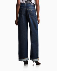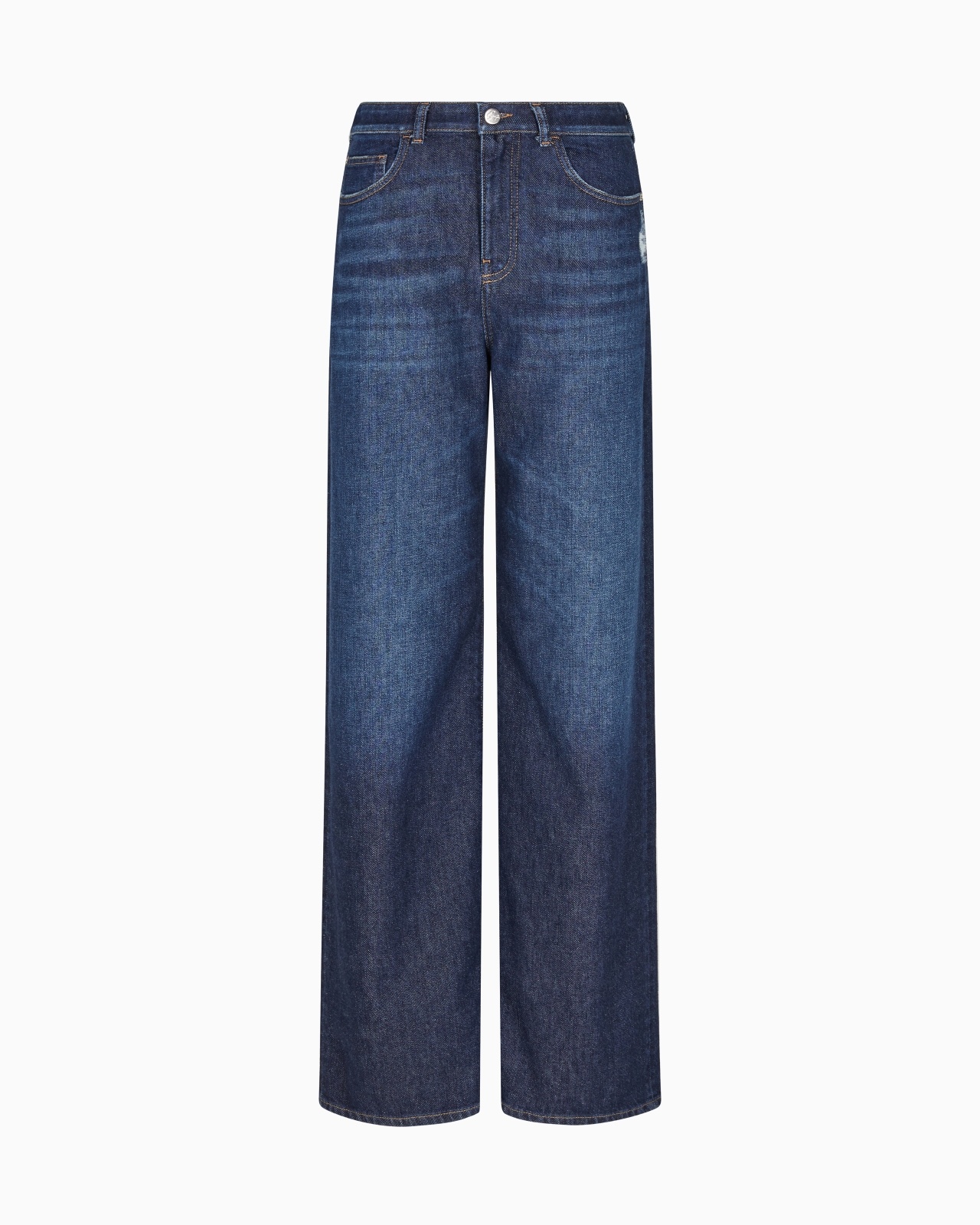 These jeans are defined by a modern style and clean, linear structure, enhanced by a mid-rise waist and wide-legged palazzo cut. Made of denim and embellished with a vintage-effect fabric treatment that gives a modern touch. The style is instantly recognisable thanks to the leather logo tag on the back. Relaxed fit. Relaxed fit Denim Mid-rise waist Five pockets Eagle plate Leather logo tag Product Code: EW000737AF17033MB001