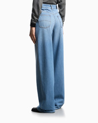These jeans are defined by a modern style and clean, linear structure, enhanced by a mid-rise waist and wide-legged palazzo cut. Made from cotton and viscose denim with a worn look. The style is instantly recognisable thanks to the leather logo jacron on the back and the EA logo on the coin pocket. Relaxed fit. Relaxed fit Denim High waist Five pockets Logo patch on the coin pocket Micro eagle plate Leather logo tag Product Code: EW000737AF12675MB003