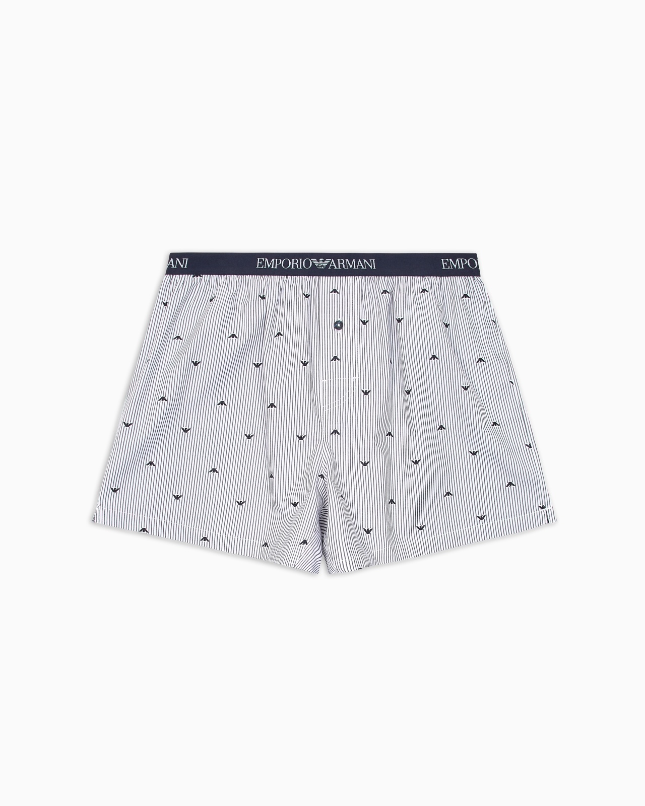 These fresh, lightweight pure cotton boxers can also be worn as loungewear. Jacquard pattern and logo elasticated waist. Pure cotton Jacquard pattern Elasticated waist with logo Product Code: EM000366AF10803FB165