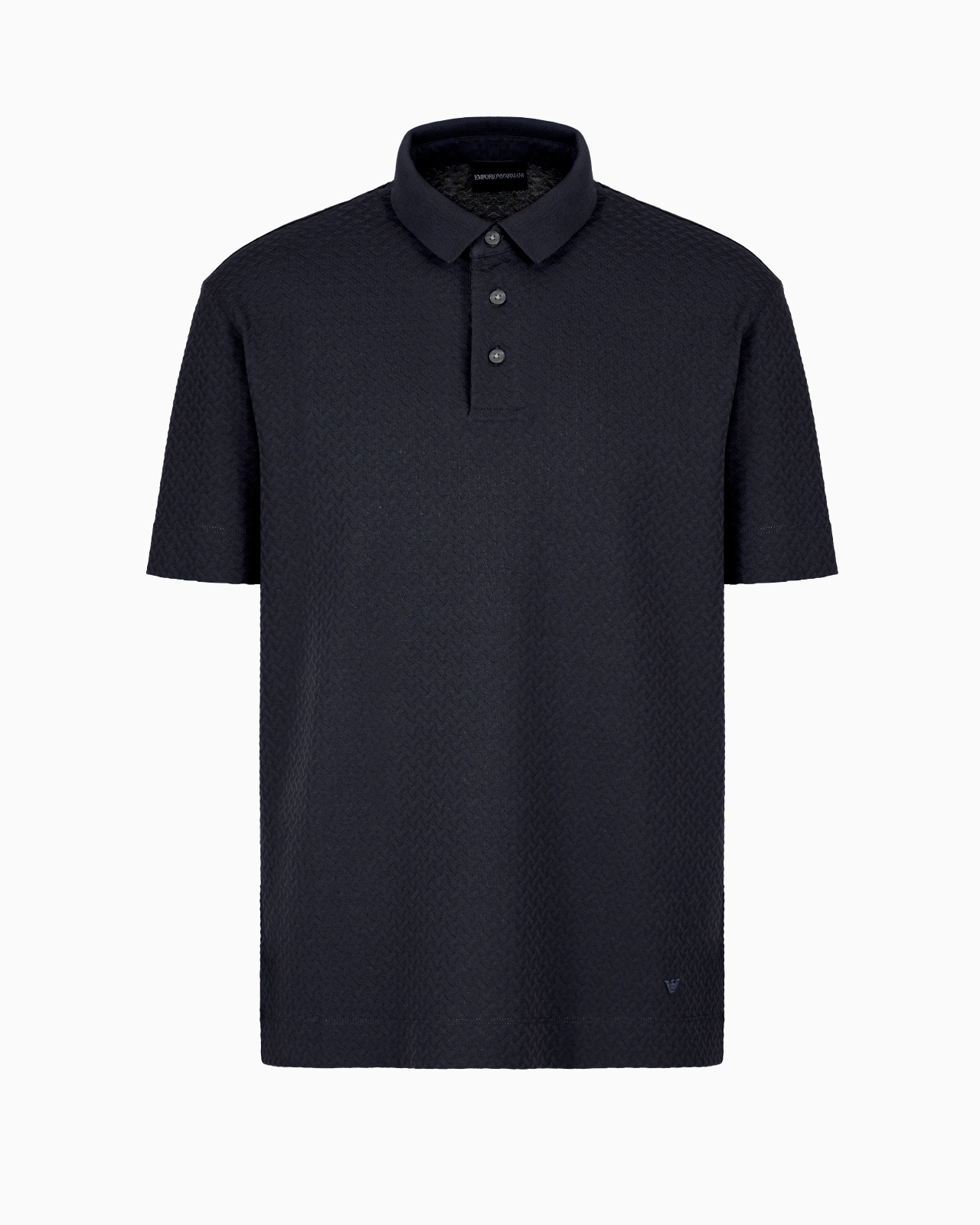 Pure cotton-jersey polo shirt featuring an all-over jacquard pattern that creates an original motif that adds prestige and personality to the style. This refined style can be worn anywhere and with anything. Regular fit Jersey Jacquard Polo-shirt collar Partial button opening Short sleeves Ribbed fabric edges Product Code: EM001295AF10762FB257