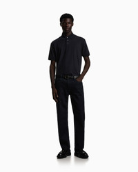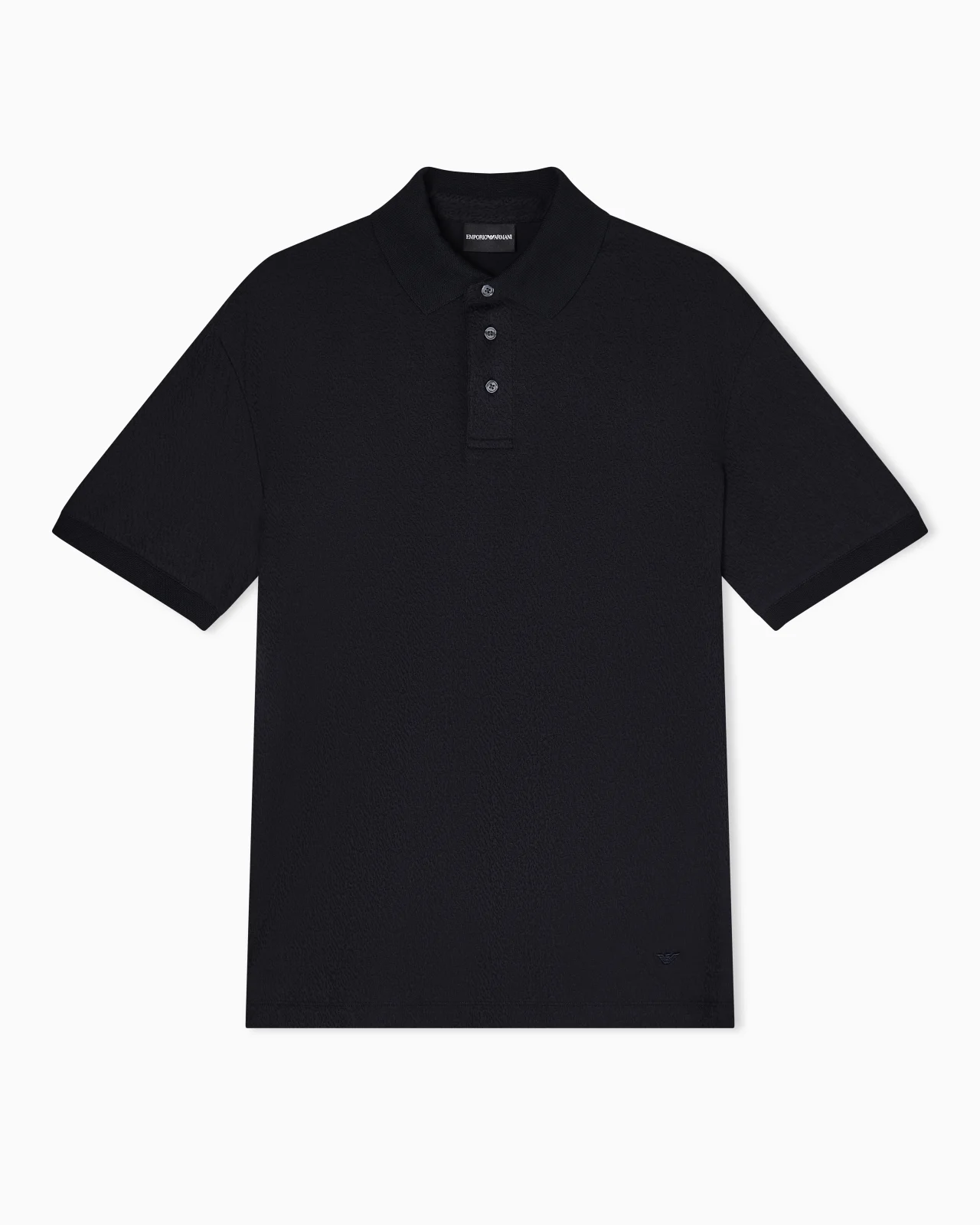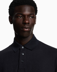 Cotton jersey polo shirt with a small percentage of silk in the composition that adds comfort and a touch of luxury. The refined jacquard workmanship creates an exclusive all-over intarsia effect. Jersey Jacquard Intarsia effect Polo-shirt collar Partial button opening Short sleeves Product Code: EM004918AF23458FB452