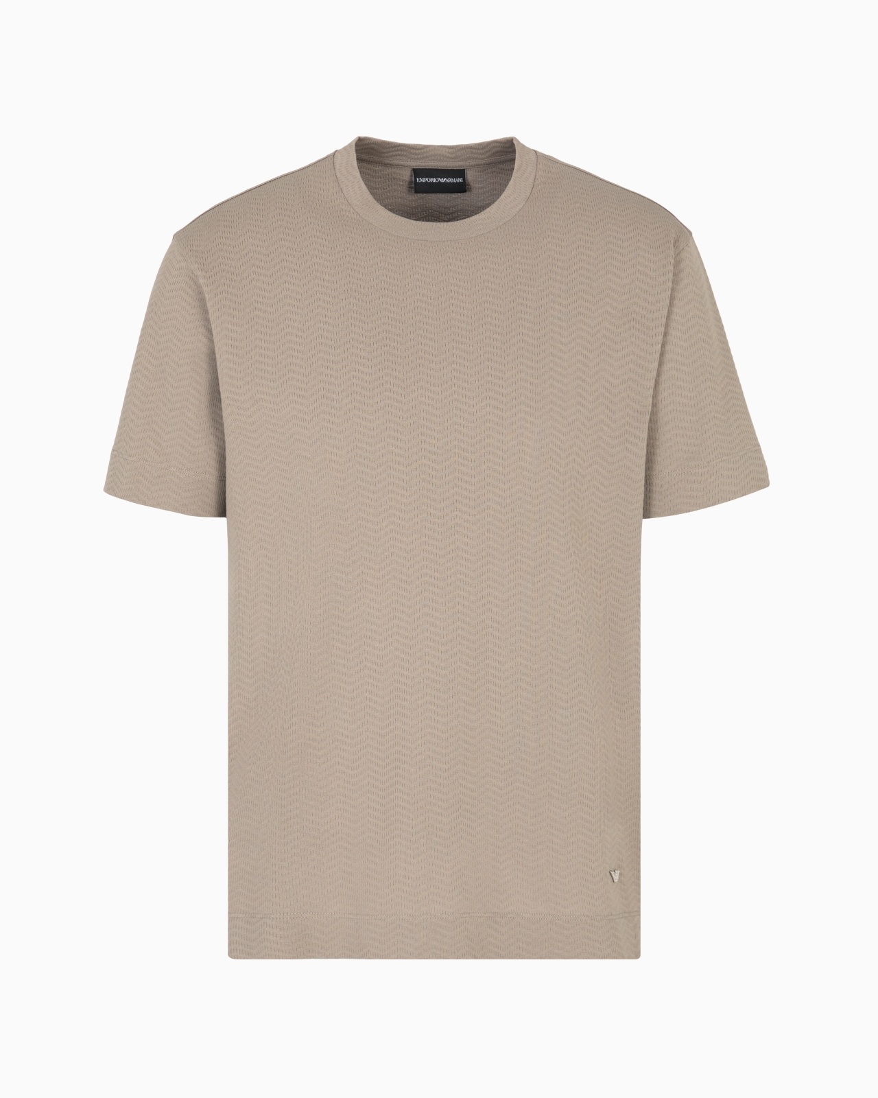 Pure cotton-jersey crew-neck T-shirt featuring an all-over jacquard pattern that creates an original motif that adds prestige and personality to the style. This refined style can be worn anywhere and with anything. Regular fit Jersey Jacquard Crew neck Short sleeves Product Code: EM001289AF10762F6066