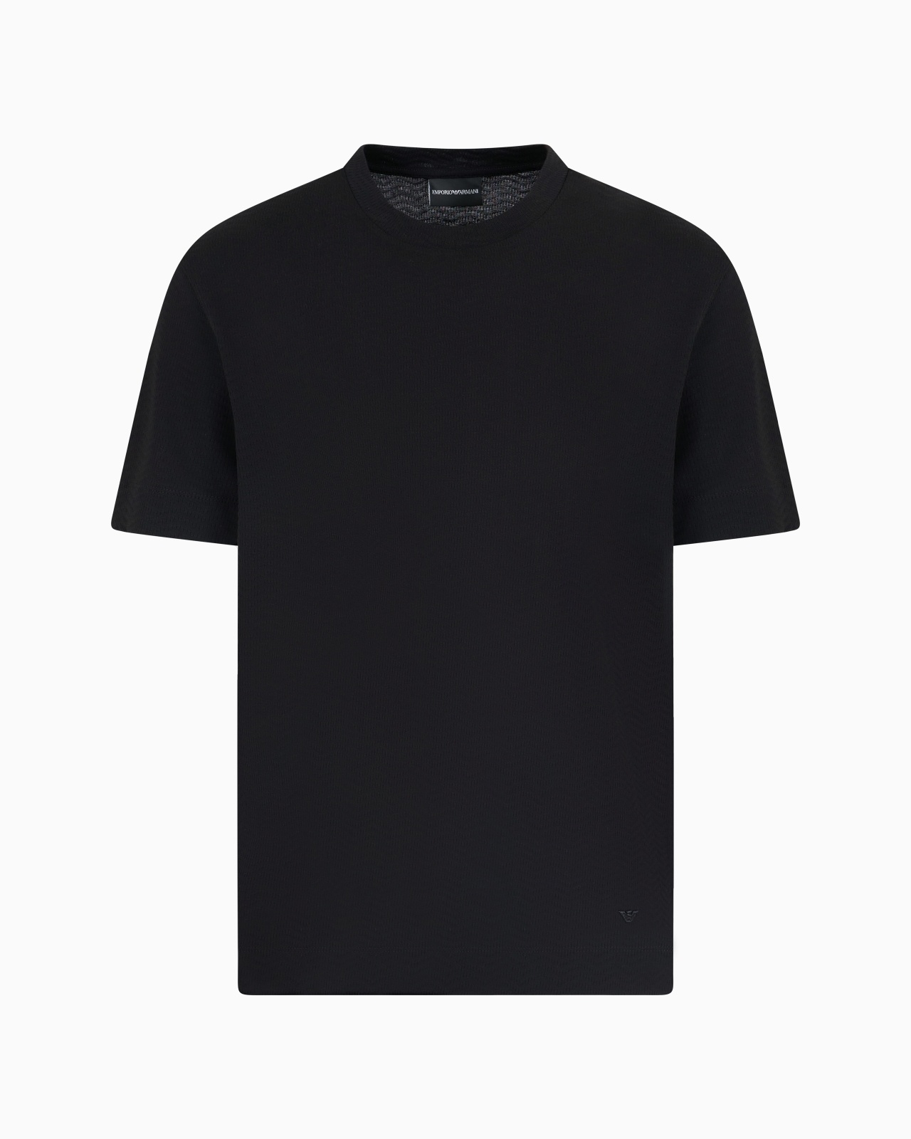 Pure cotton-jersey crew-neck T-shirt featuring an all-over jacquard pattern that creates an original motif that adds prestige and personality to the style. This refined style can be worn anywhere and with anything. Regular fit Jersey Jacquard Crew neck Short sleeves Product Code: EM001289AF10762FC154