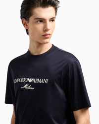 Crew-neck T-shirt featuring logo embroidery in the foreground. Made from a jersey in a blend of cotton and Lyocell, a semi-synthetic fibre that has an exceptionally low impact on the environment. It is derived from eucalyptus trees and is renowned for being moisture-wicking, durable, breathable and wrinkle-proof. Jersey Crew neck Short sleeves Logo embroidery Product Code: EM001033AF10017MB222